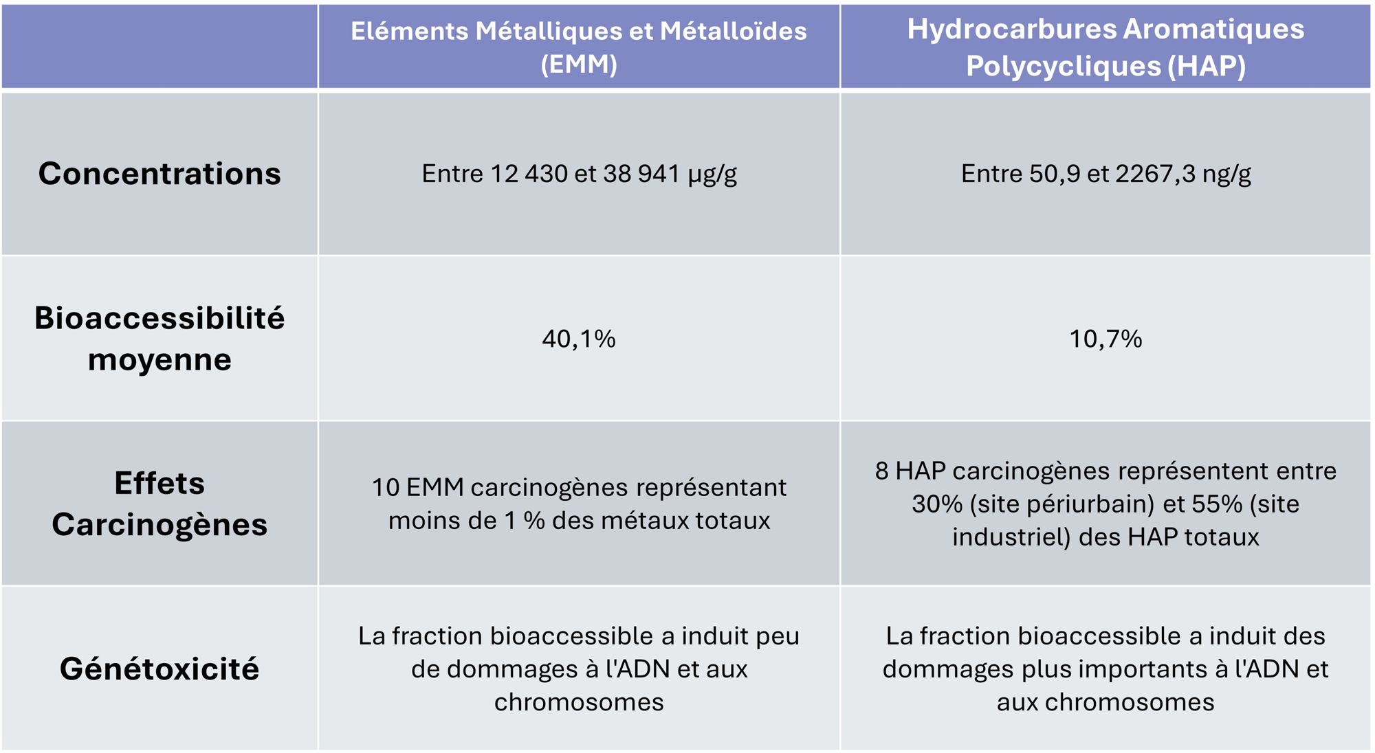 - Étude des Hydrocarbures Aromatiques Polycycliques et les Éléments Métalliques et Métalloïdes : quels autres contaminants dans la fraction bioaccessible ?
