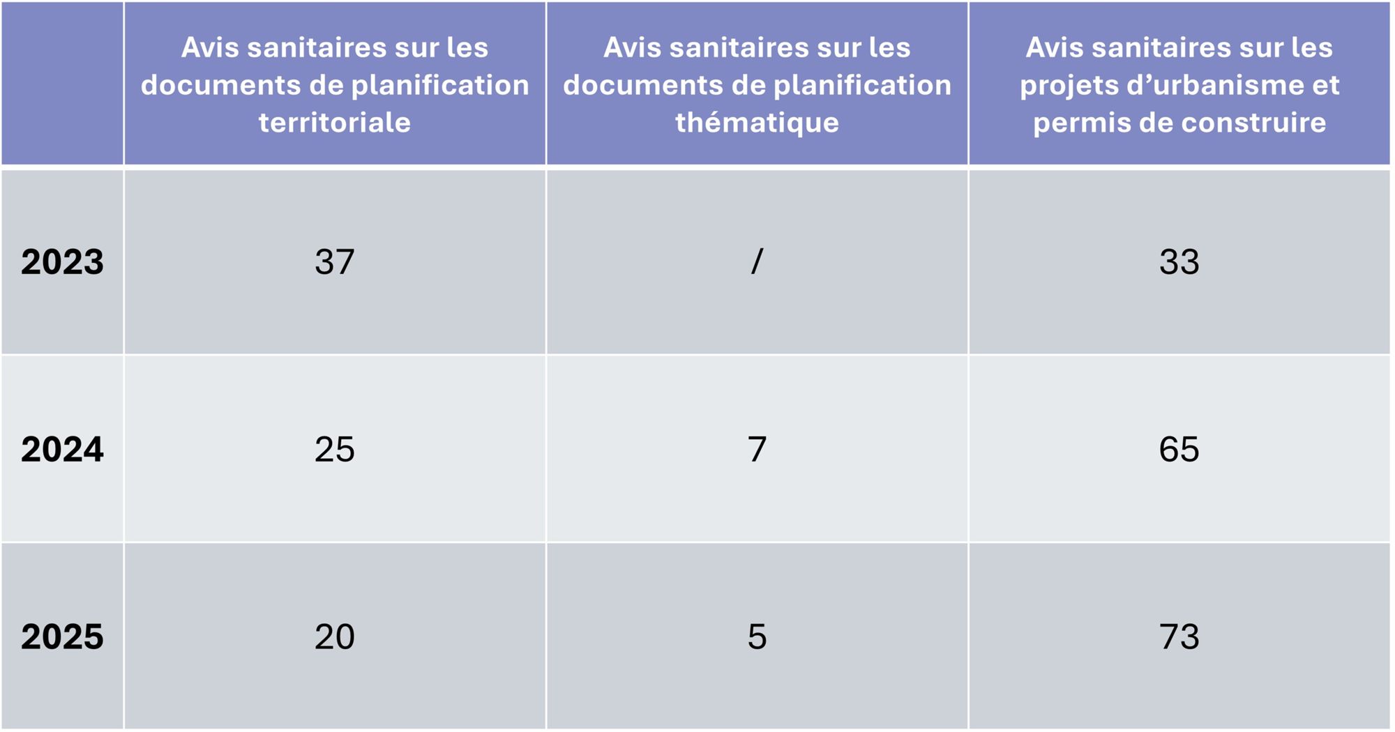 Nombre d’avis sanitaires rendus par la Direction Départementale des Bouches-du-Rhône de l’Agence Régionale de Santé PACA sur les documents de planification territoriale (SChémas de COhérence Territoriale, Plans Locaux d’Urbanisme), les documents de planification thématique (Schéma Régional du Climat, de l’Air et de l’Énergie, Plans de Déplacement Urbain, Plans Locaux de l’Habitat, Schémas d’Assainissement et d’Eau Potable), les projets d'urbanisme et permis de construire