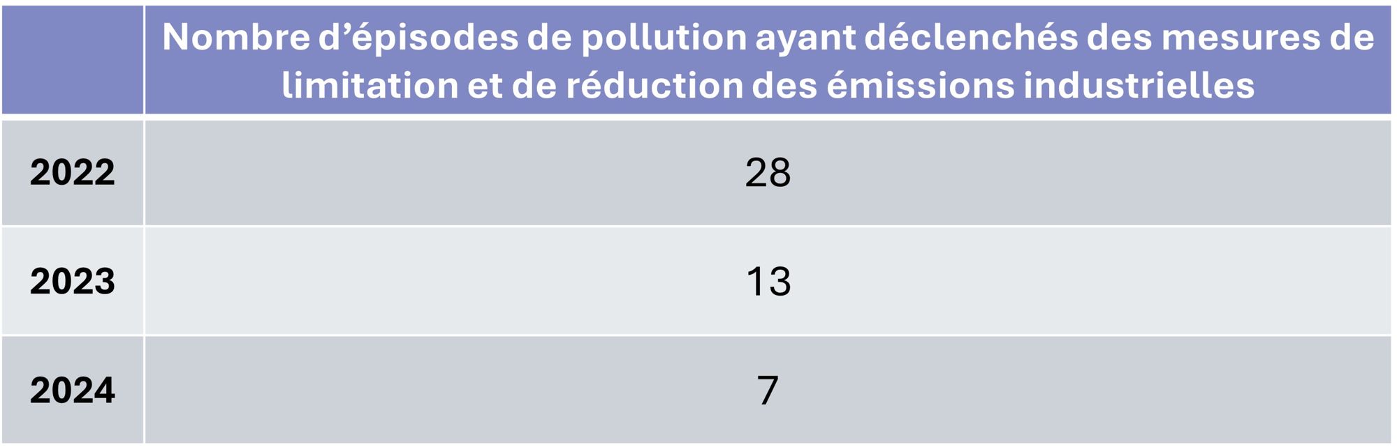 Nombre d’épisodes de pollution ayant déclenché des mesures de limitation et de réduction des émissions de la part des industriels