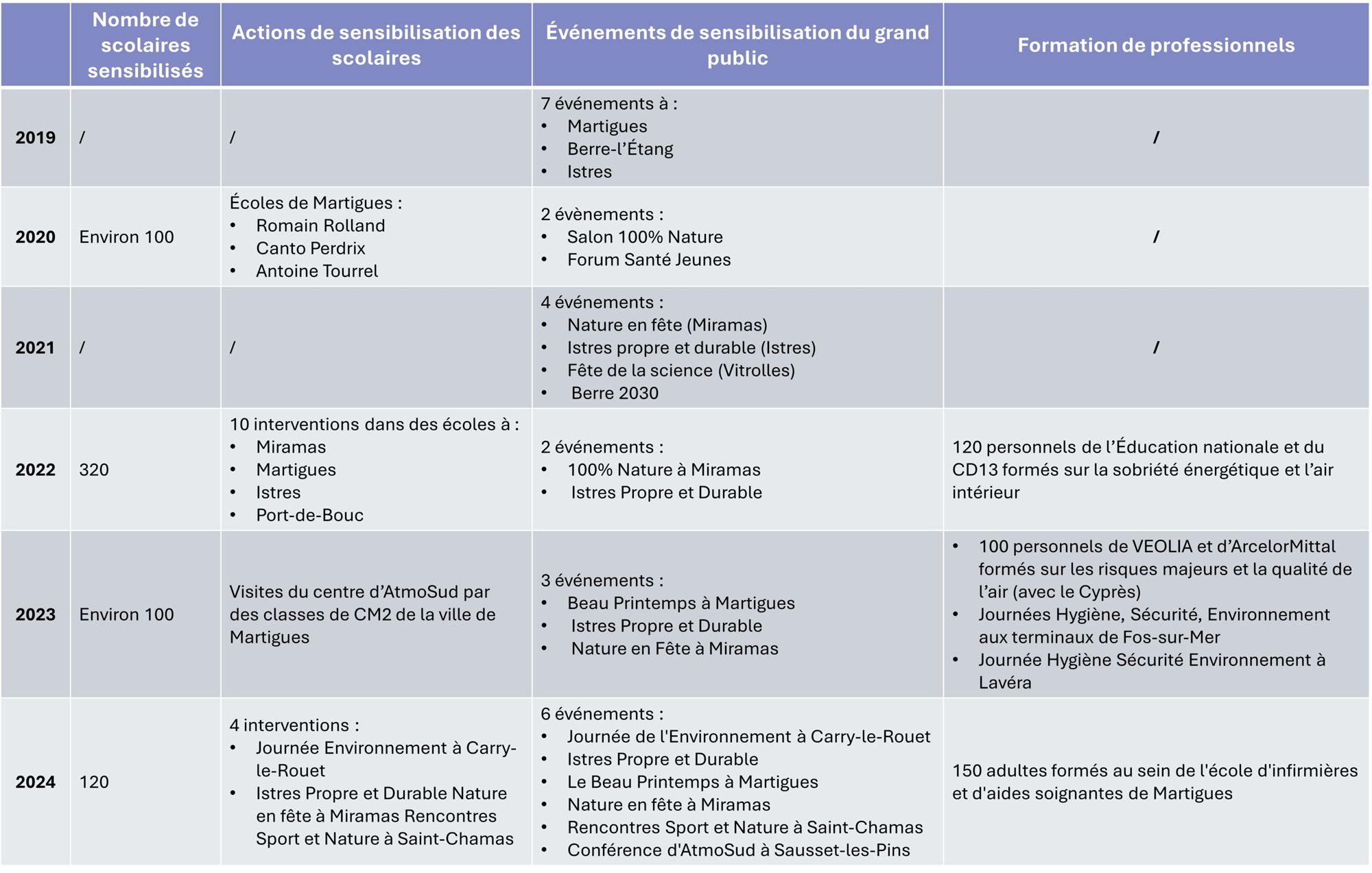 AtmoSud accompagne les acteurs à la mise en place d'un programme de sensibilisation des enfants et des jeunes sur leur territoire et réalise des formations de formateurs sur l'utilisation de ces outils.