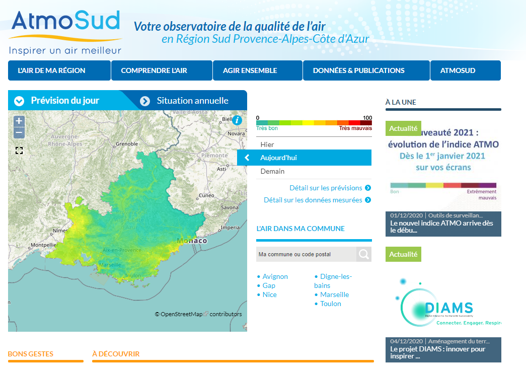 Un bulletin qualité de l'air est diffusé tous les soirs sur la chaîne de télévision France 3 Provence-Alpes-Côte d'Azur vers 19h20 : prévision de la qualité de l'air pour le lendemain avec un commentaire concis comprenant des informations sur les conditions météo, les épisodes de pollution, les pollens et/ou les bons gestes.