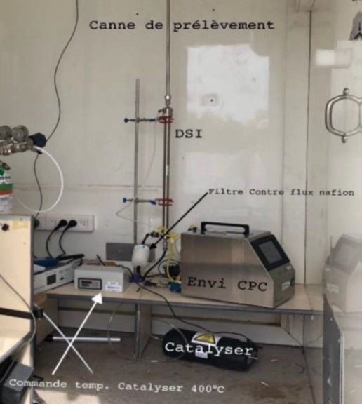 Les matériels installés sont des compteurs UF CPC qui répondent à la norme CEN/TS 16976. Ils sont préconisés par le Laboratoire Central de Surveillance de la Qualité de l’Air pour mesurer sur la frange granulométrique de 10 à 1000 nanomètres.