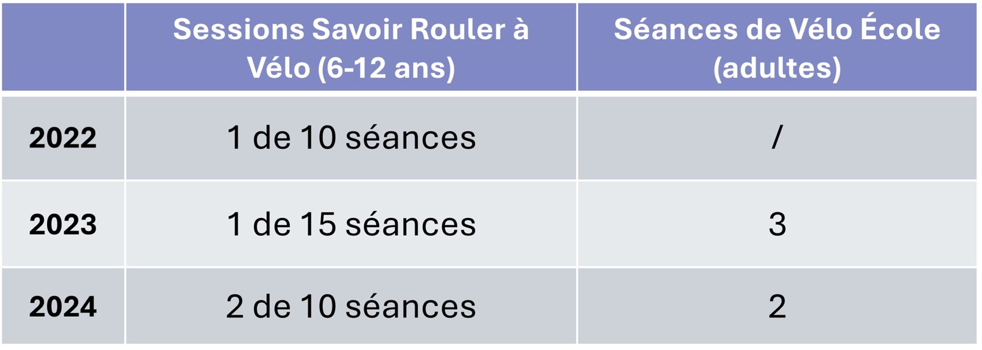 En 2023 : Le projet Vélo École pour adultes se poursuit et devrait démarrer en 2024. Une formation Coach Mobilité à Vélo doit encore être financée, et un bénévole doit être coopté pour prendre en charge cette nouvelle activité.