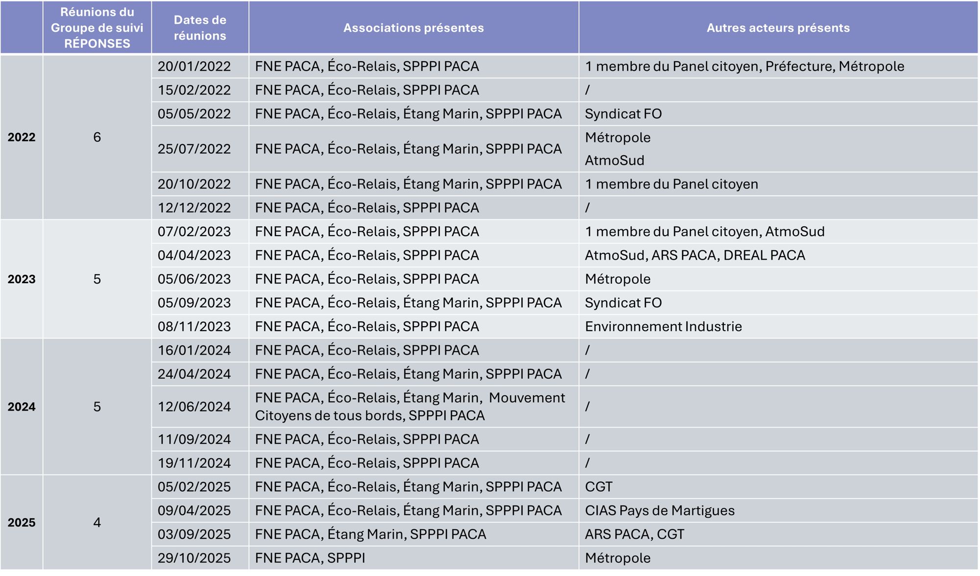 - Veillent à la mise en œuvre du suivi technique du plan d'action réalisé par le SPPPI PACA ;
