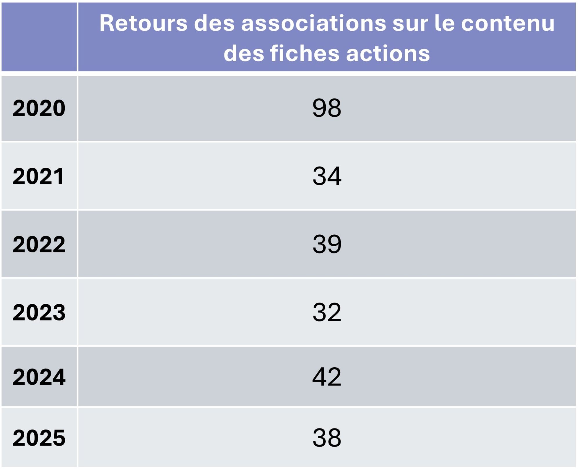Nombre de retours des associations du Groupe de suivi RÉPONSES sur le contenu des fiches actions