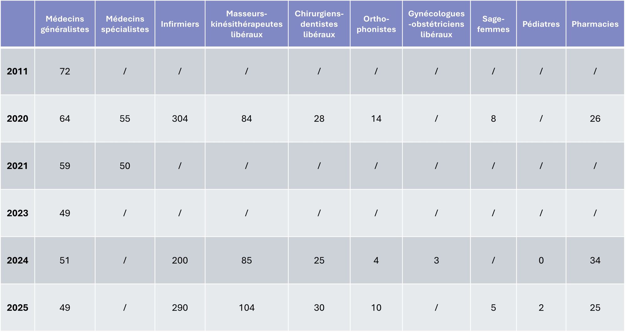 En 2022 et 2023 : Des travaux de recensement et de collecte de données sont menés. Un projet de cartographie interactive de l’offre de soins à l’échelle locale, permettant la géolocalisation des établissements et l’identification des professionnels est entamé.