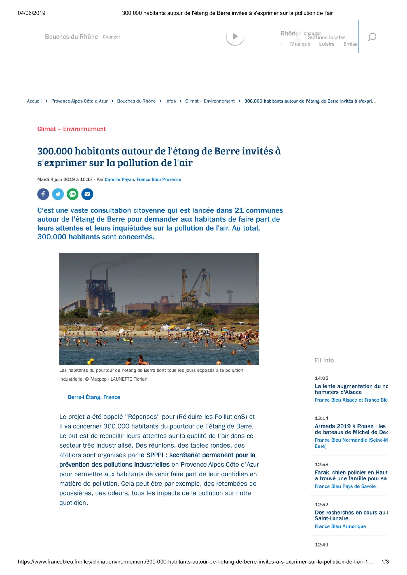 C'est une vaste consultation citoyenne qui est lancée dans 21 communes autour de l'étang de Berre pour demander aux habitants de faire part de leurs attentes et leurs inquiétudes sur la pollution de l'air. Au total, 300.000 habitants sont concernés.