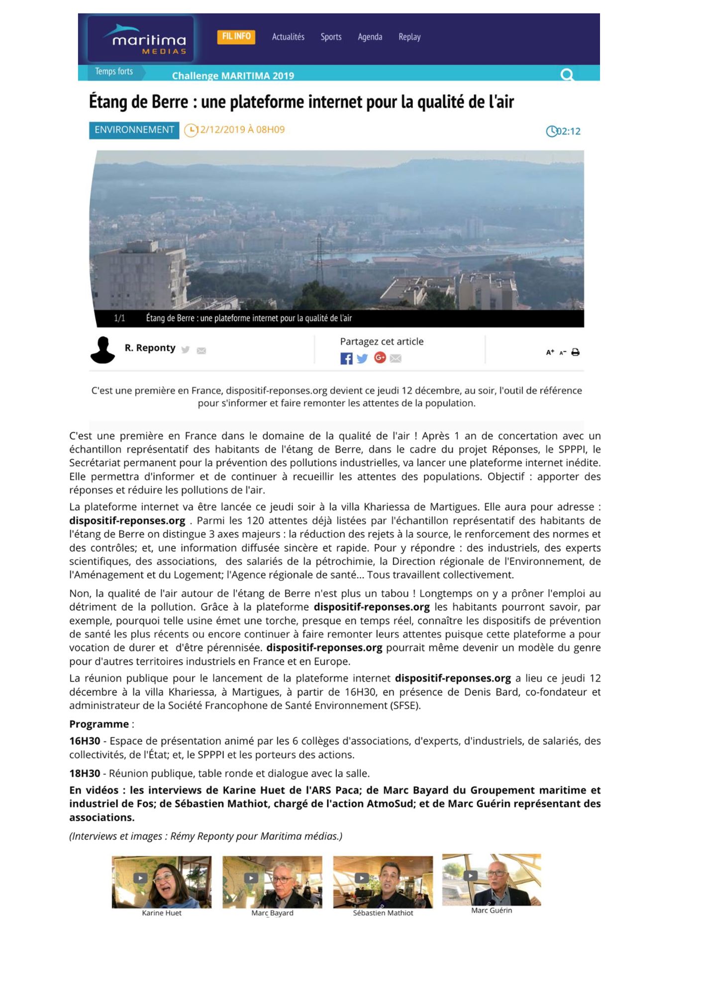 Étang de Berre : une plateforme internet pour la qualité de l'air