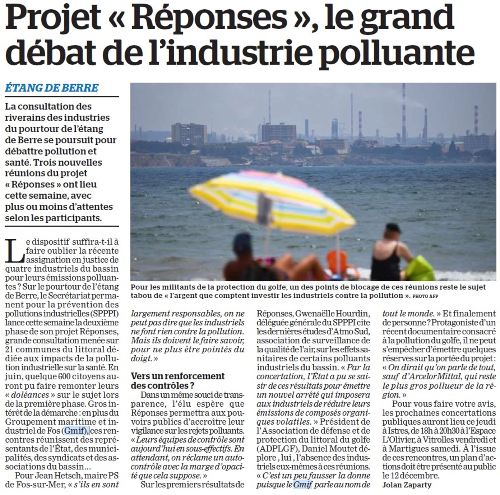 Sur le pourtour de l'étang de Berre, le Secrétariat permanent pour la prévention des pollutions industrielles (SPPPI) lance cette semaine la deuxième phase de son projet Réponses, grande consultation menée sur 21 communes du littoral dédiée aux impacts de la pollution industrielle sur la santé.