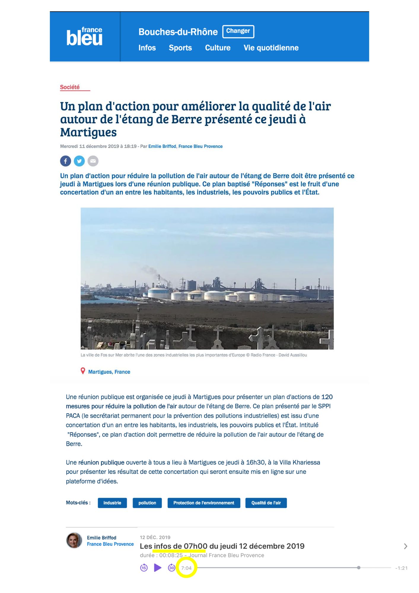 Un plan d'action pour améliorer la qualité de l'air autour de l'étang de Berre présenté ce jeudi à Martigues