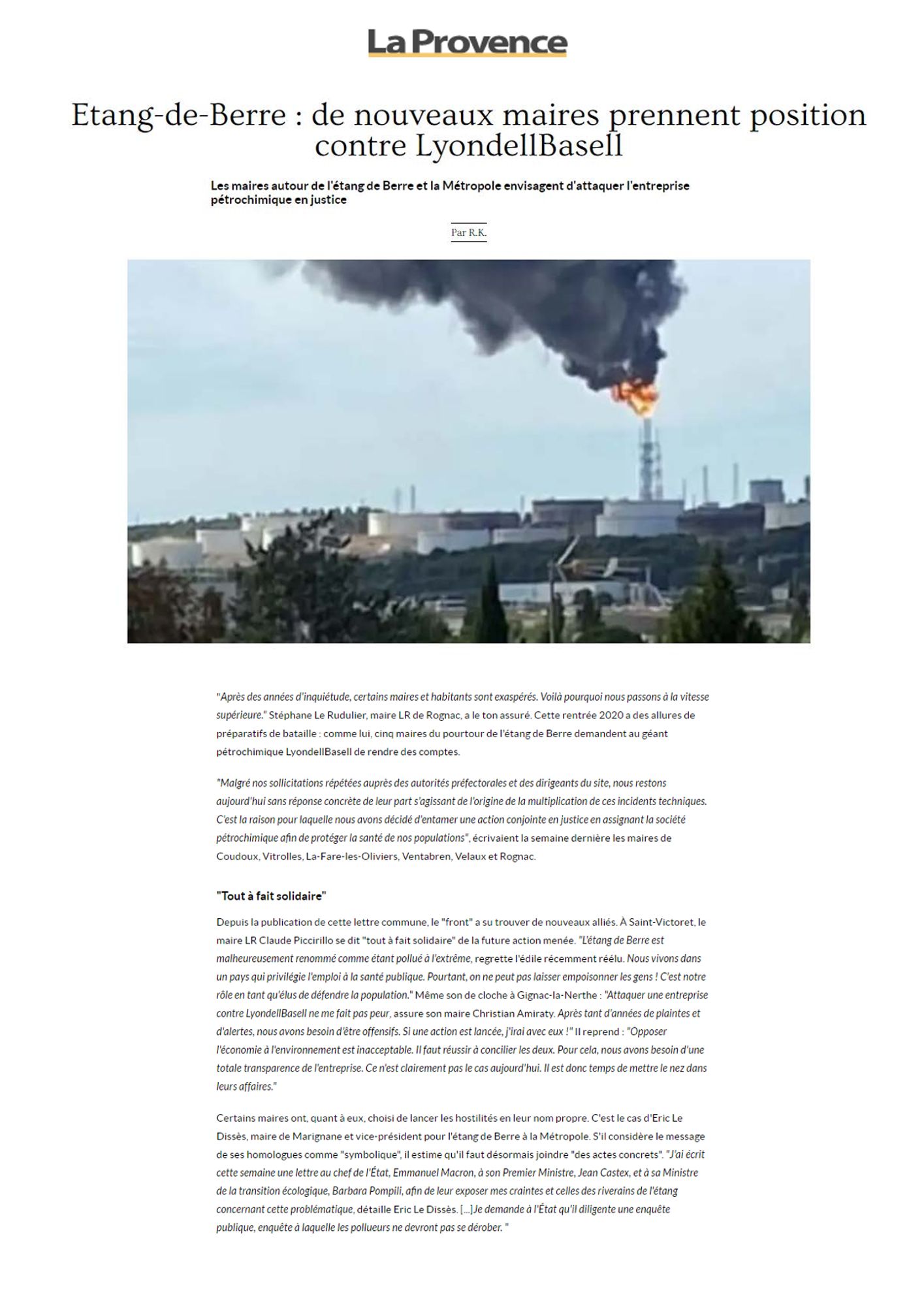 En janvier 2019, 21 communes ont adhéré au projet RÉPONSES, une concertation citoyenne sur la qualité de l'air autour de l'étang. "Le but est d'échanger avec tous les acteurs du territoire. LyondellBasell inclus".