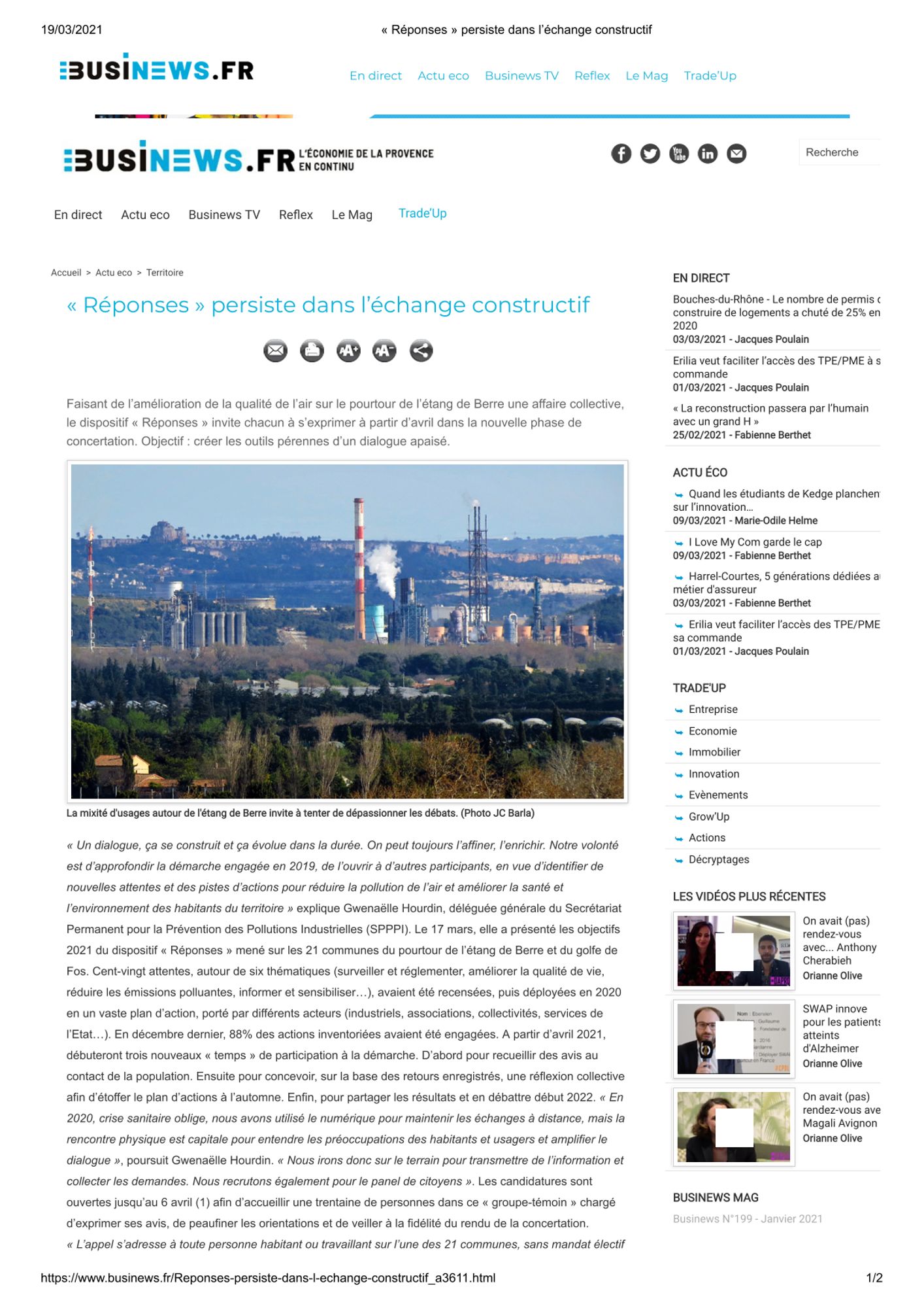 Faisant de l’amélioration de la qualité de l’air sur le pourtour de l’étang de Berre une affaire collective, le dispositif « Réponses » invite chacun à s’exprimer à partir d’avril dans la nouvelle phase de concertation. Objectif : créer les outils pérennes d’un dialogue apaisé.