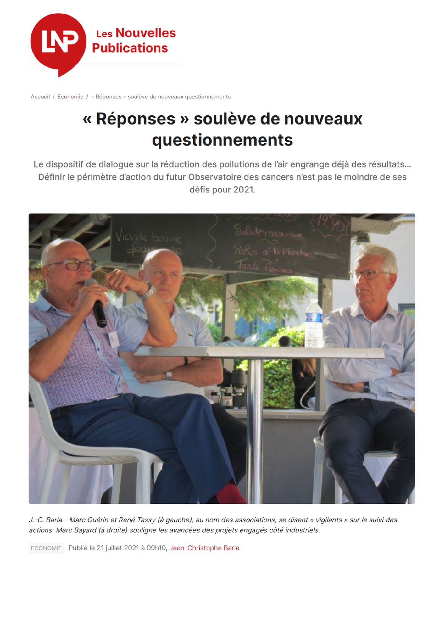 Le dispositif de dialogue sur la réduction des pollutions de l’air engrange déjà des résultats… Définir le périmètre d’action du futur Observatoire des cancers n’est pas le moindre de ses défis pour 2021.