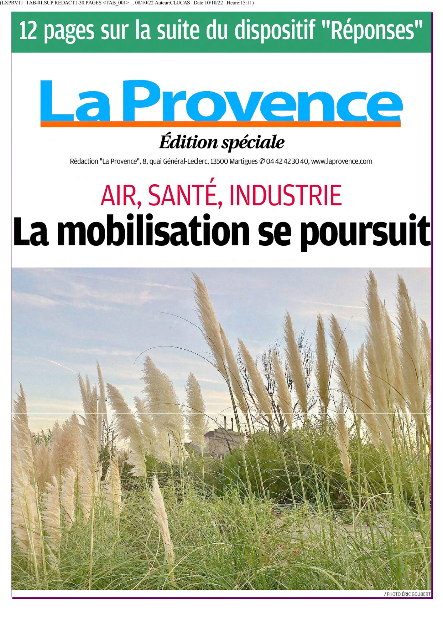Air, Santé, Industrie : la mobilisation se poursuit Supplément La Provence, 8 octobre 2022 RÉPONSES, un rôle clé pour élever un débat passionné. Lire le supplément : Air, Santé, Industrie : la mobilisation se poursuit (Supplément La Provence, 8 octobre 2022) (18.0 Mo)