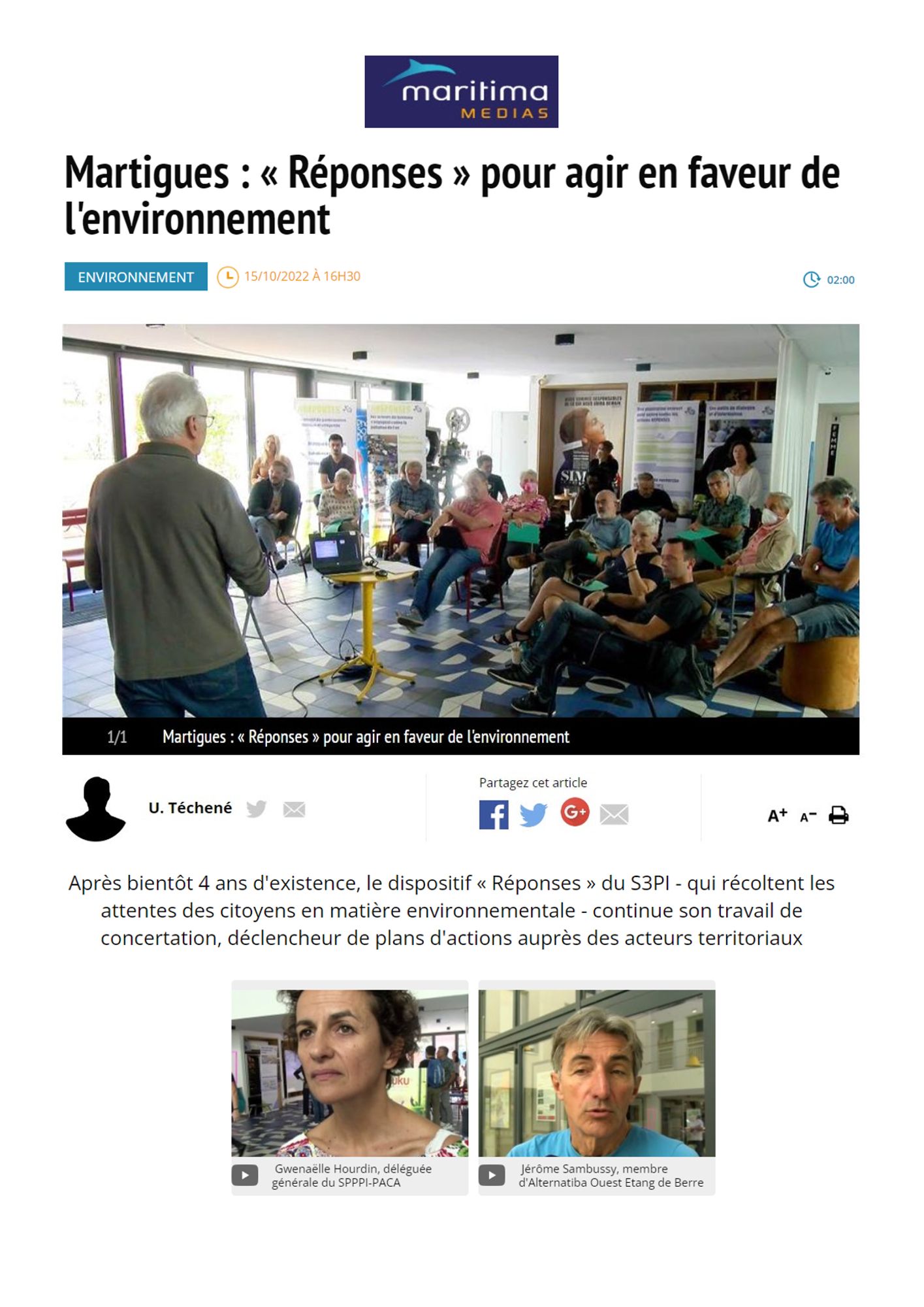 Martigues : « Réponses » pour agir en faveur de l'environnement