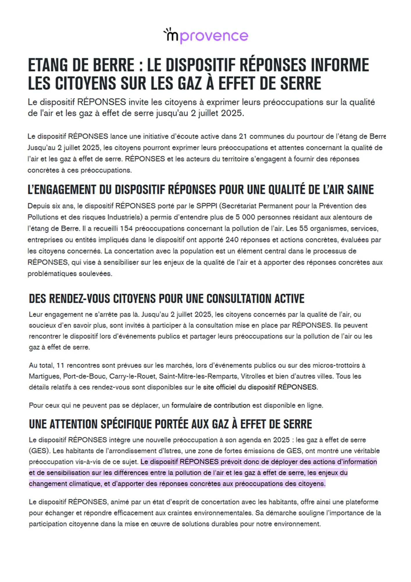 Étang de Berre : le dispositif RÉPONSES informe les citoyens sur les gaz à effet de serre