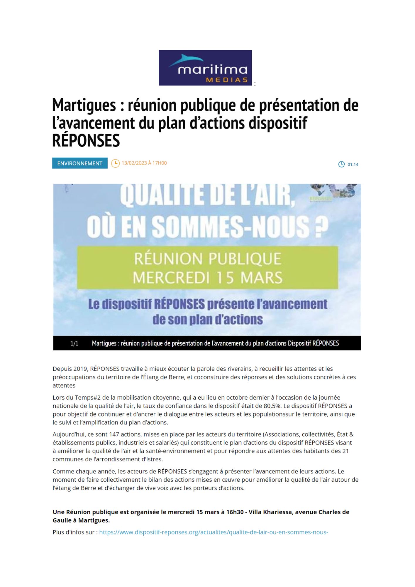 Martigues : réunion publique de présentation de l’avancement du plan d’actions dispositif RÉPONSES