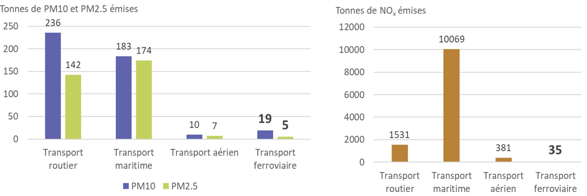 Sur l’arrondissement d’Istres, les émissions de polluants atmosphériques liées au transport ferroviaire sont bien inférieures aux émissions du transport routier et maritime.