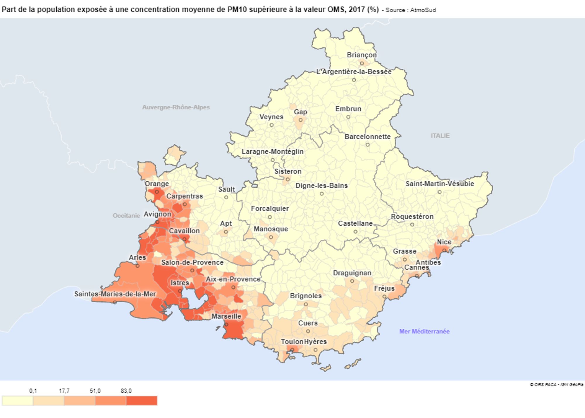 L’exposition aux trois polluants « principaux » (à entendre retenus classiquement pour analyser l’exposition d’une population à la pollution) ci-dessus présentée montre de manière significative une exposition importante des habitants de l'étang de Berre aux particules fines (PM10) sans pour autant en faire une spécificité régionale.